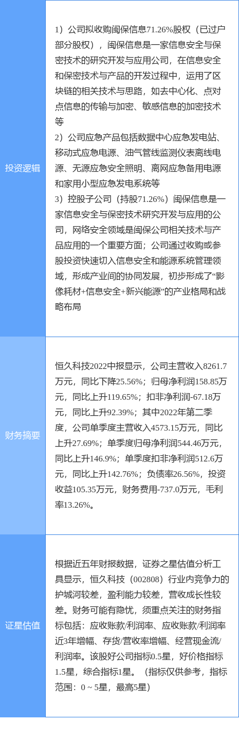 恒久科技涨停收盘,收盘价7.52元。该股于13点3分涨停,未打开涨停,截止收盘封单资金为4040.09万元,占其流通市值3.13%。