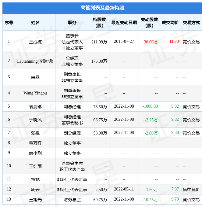 双成药业的高管列表及最新持股情况如下: