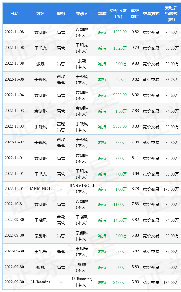 双成药业近半年内的董监高及核心技术人员增减持详情如下: