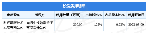 东方智造(002175)3月13日公开信息显示,股东科翔高新技术发展有限公司向南通中投融资担保有限责任公司合计质押300.0万股,占总股本0.23%。质押详情见下表: