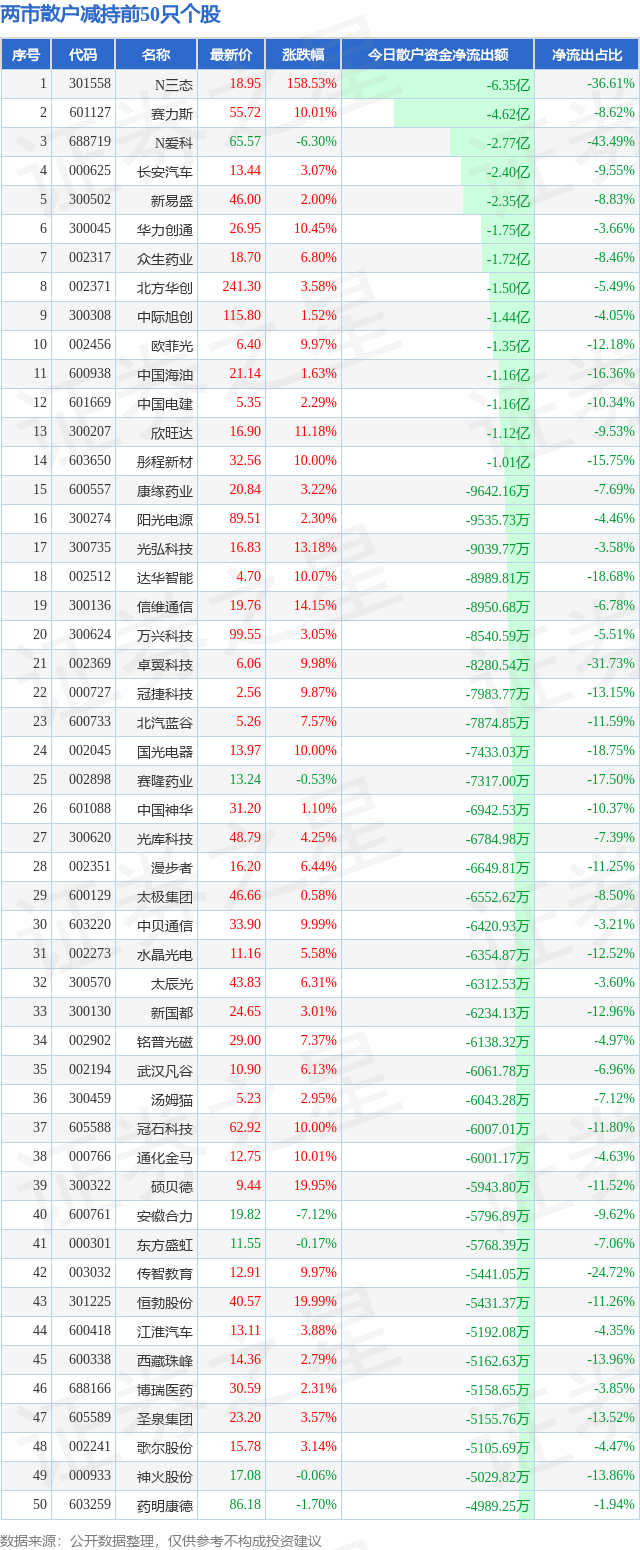 今天的市况大概如此,那么又有哪些公司遭散户抛弃呢?请看下表: