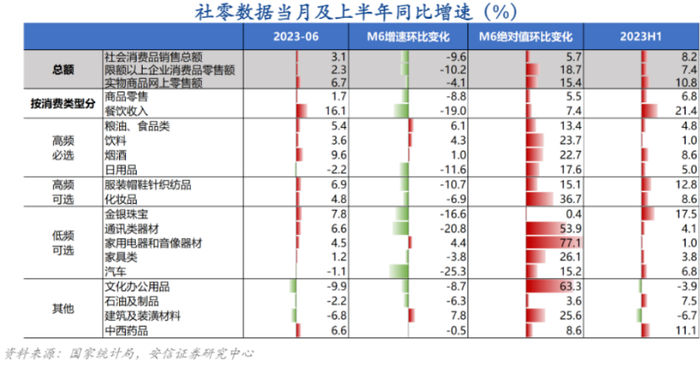 今年以来社零消费同比正增长,餐饮增速显著高于商品零售,全国餐饮总规模超过2019年同期,这主要是由于线下场景放开后对线下餐饮拉动最为明显。进一步来看,必选消费表现稳健,可选消费分化明显,高频可选优于低频可选。