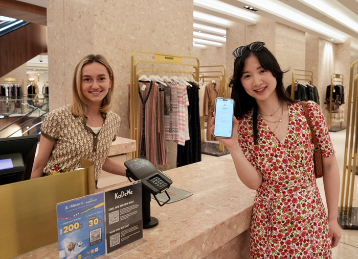 图说:外国游客用支付宝消费,畅游中国支付宝焕新 新支付新服务促国庆消费活力