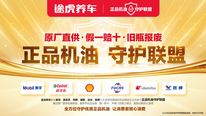 3月17日,途虎养车联合美孚、嘉实多、壳牌等六大国际润滑油品牌成立首个“正品机油守护联盟”,通过原厂直供、假一赔十、旧瓶报废三大核心举措,构建从生产源头到终端服务的全链路正品保障体系。