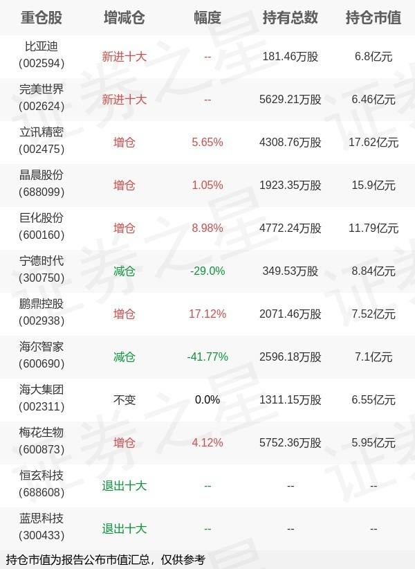 证券之星消息,4月21日兴证全球基金旗下谢治宇管理的兴全合润混合型基金(LOF)公布一季报,近1年净值增长率9.15%。与上一季度相比,该基金前十大重仓股新增比亚迪,完美世界;并对立讯精密增仓230.3万股,为该基金第一大重仓股;恒玄科技,蓝思科技等退出前十大重仓股;详细数据如下: