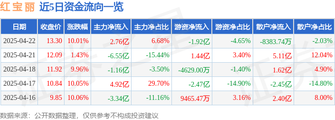 4月22日的资金流向数据方面,主力资金净流入2.76亿元,占总成交额6.68%,游资资金净流出1.92亿元,占总成交额4.65%,散户资金净流出8383.74万元,占总成交额2.03%。