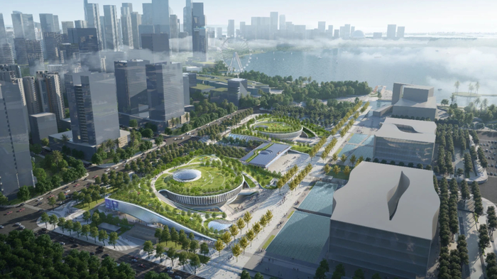 项目位于深圳市宝安中心区,建筑面积超13万平方米,是深圳新时代重大文化设施之一和深圳市重大文体惠民工程,是集自然开放、文旅融合、业态创新、商业活化、科技赋能等亮点于一体的全新一代文化综合体,项目旨在打造面向粤港澳、辐射大湾区的地标级文化旅游目的地,定名为“湾区之眼”。