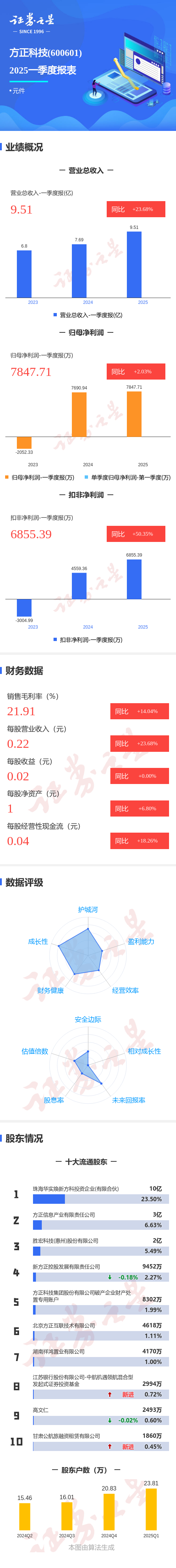 证券之星消息,方正科技2025年一季报显示,公司主营收入9.52亿元,同比上升23.68%;归母净利润7847.72万元,同比上升2.04%;扣非净利润6855.4万元,同比上升50.36%;负债率43.87%,投资收益-70.39万元,财务费用125.08万元,毛利率21.91%。
