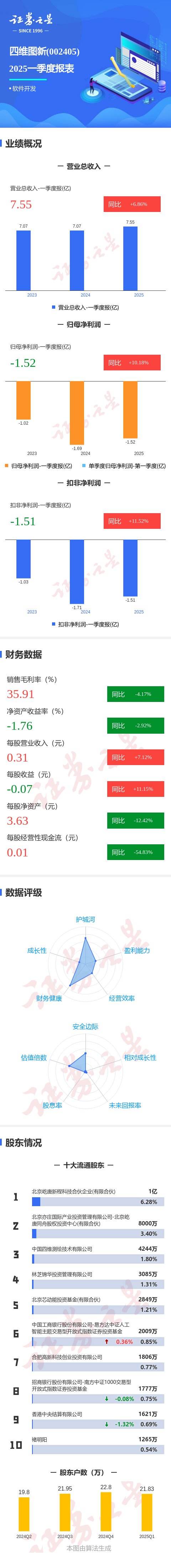 证券之星消息,四维图新2025年一季报显示,公司主营收入7.56亿元,同比上升6.87%;归母净利润-1.52亿元,同比上升10.18%;扣非净利润-1.52亿元,同比上升11.53%;负债率20.01%,投资收益-2435.38万元,财务费用-920.29万元,毛利率35.91%。