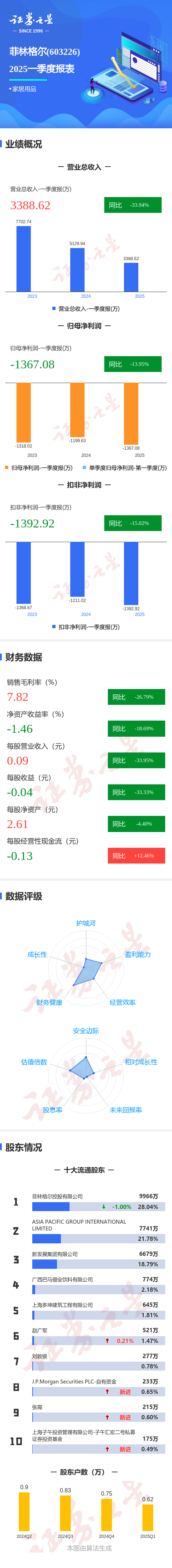 证券之星消息,菲林格尔2025年一季报显示,公司主营收入3388.62万元,同比下降33.94%;归母净利润-1367.08万元,同比下降13.96%;扣非净利润-1392.93万元,同比下降15.02%;负债率28.8%,投资收益6.18万元,财务费用23.97万元,毛利率7.82%。
