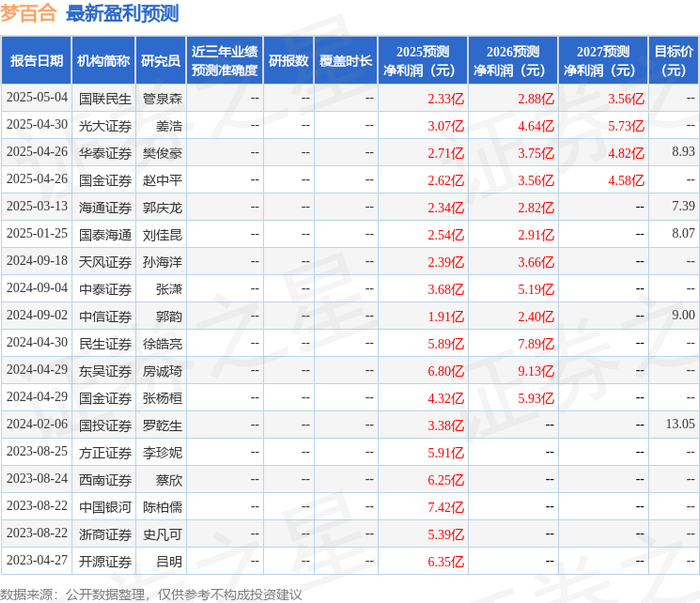最新盈利预测明细如下: