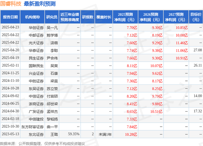 以下是详细的盈利预测信息: