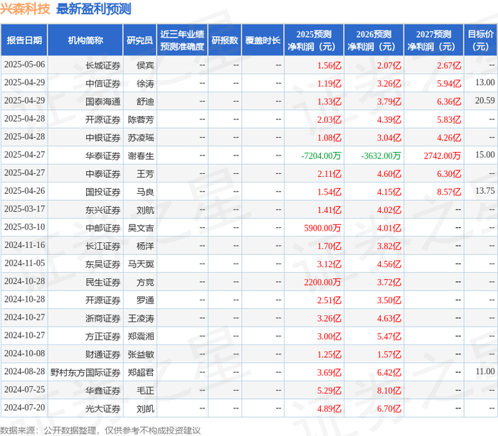 以下是详细的盈利预测信息: