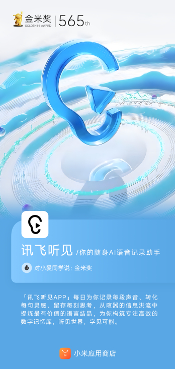 近日,科大讯飞旗下智能语音领域代表产品讯飞听见APP凭借卓越的技术实力与用户口碑,荣获小米颁发的“金米奖”。该奖项作为小米应用商店对优质应用的重磅表彰,旨在挖掘创新性强、体验卓越的标杆产品。此次获奖标志着讯飞听见APP在智能语音赛道的技术领先性与市场影响力再获行业权威认证。
