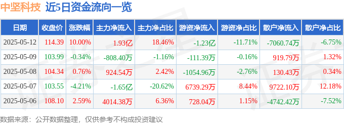 5月12日的资金流向数据方面,主力资金净流入1.93亿元,占总成交额18.46%,游资资金净流出1.23亿元,占总成交额11.71%,散户资金净流出7060.74万元,占总成交额6.75%。