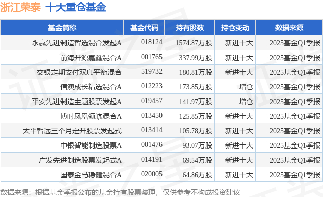 根据2025基金Q1季报公募基金重仓股数据,重仓该股的公募基金共41家,其中持有数量最多的公募基金为永赢基金的永赢先进制造智选混合发起A。永赢先进制造智选混合发起A目前规模为30.41亿元,最新净值1.9986(5月16日),较上一交易日上涨2.06%,近一年上涨113.0%。该公募基金现任基金经理为张璐。张璐在任的基金产品包括:永赢高端装备智选混合发起A,管理时间为2022年7月15日至今,期间收益率为-23.87%;永赢卓越臻选股票发起A,管理时间为2023年12月5日至今,期间收益率为-0.66%;永赢上证科创板100指数增强发起A,管理时间为2024年5月28日至今,期间收益率为20.34%。