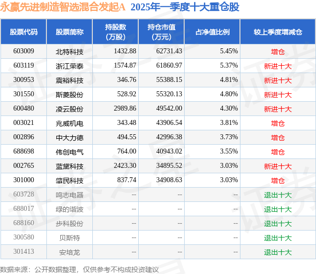 永赢先进制造智选混合发起A的前十大重仓股如下:
