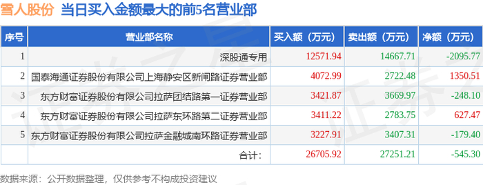 证券之星消息,沪深交易所2025年6月3日公布的交易公开信息显示,雪人股份(002639)因日换手率达到20%的前5只证券登上龙虎榜。此次是近5个交易日内第5次上榜。