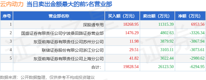 证券之星消息,沪深交易所2025年6月3日公布的交易公开信息显示,云内动力(000903)因日跌幅偏离值达到7%的前5只证券登上龙虎榜。此次是近5个交易日内第4次上榜。