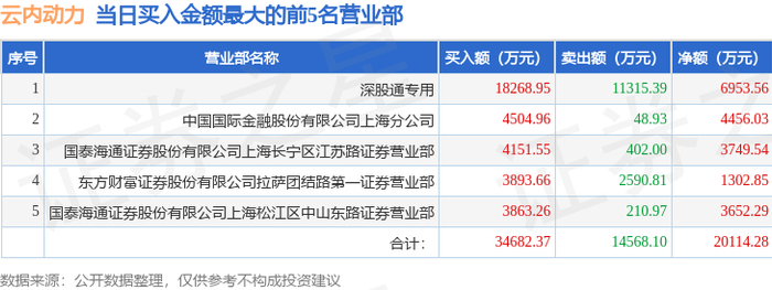从龙虎榜公布的当日买卖数据来看,北向资金合计净买入6953.56万元。章盟主、上海中山东路、宁波桑田路、上塘路等知名游资榜上有名。(知名游资章盟主一般指国泰海通证券股份有限公司上海长宁区江苏路证券营业部席位、知名游资上海中山东路一般指国泰海通证券股份有限公司上海松江区中山东路证券营业部席位、知名游资宁波桑田路一般指国盛证券有限责任公司宁波桑田路证券营业部席位、知名游资上塘路一般指联储证券股份有限公司浙江分公司席位,根据市场资料整理,仅供参考)