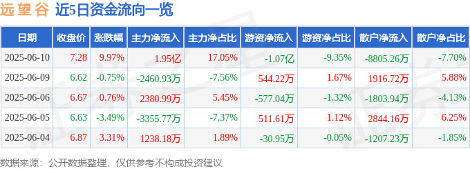 6月10日的资金流向数据方面,主力资金净流入1.95亿元,占总成交额17.05%,游资资金净流出1.07亿元,占总成交额9.35%,散户资金净流出8805.26万元,占总成交额7.7%。