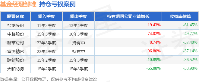 邹唯管理的嘉实主题混合基金在11年3季度买入盐湖股份,在持有2年又1个季度后在13年4季度卖出。持有期间的估算收益率为-61.45%,持有期间盐湖股份在2011年到2013年的年报营业总收入增幅达19.43%。