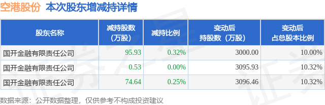 证券之星消息,8月27日空港股份发布公告《空港股份:空港股份简式权益变动报告书(国开金融)》,其股东国开金融有限责任公司于2025年8月21日至2025年8月26日间合计减持171.1万股,占公司目前总股本的0.5704%,变动期间该股股价上涨7.17%,截止8月26日收盘报12.55元。