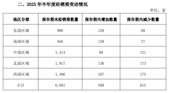 上半年经销商数量再减26家