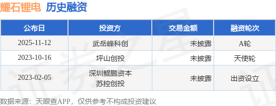 证券之星消息,根据天眼查APP于11月12日公布的信息整理,深圳耀石锂电科技有限公司A轮融资,融资额未披露,参与投资的机构包括武岳峰科创。