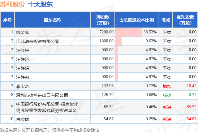 根据苏利股份2025年三季报公布的十大股东详情如下: