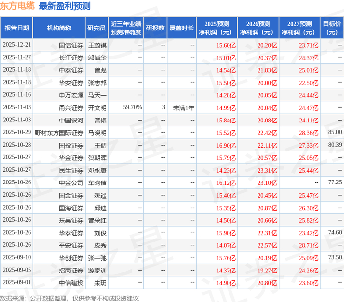 东吴证券股份有限公司曾朵红,郭亚男,胡隽颖近期对东方电缆进行研究并发布了研究报告《中标亚洲能源互联海缆大订单,东南亚互联有望带来增量业绩》,给予东方电缆买入评级。
