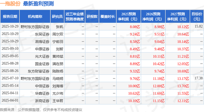 最新盈利预测明细如下: