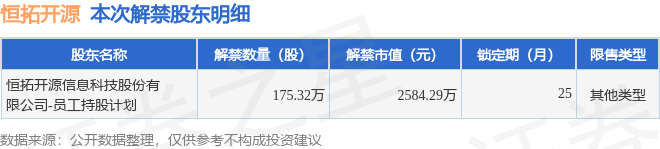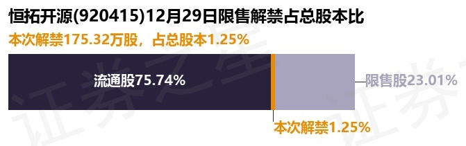 证券之星消息,根据市场公开信息整理,恒拓开源(920415)于12月29日将有175.32万股限售股份解禁,为公司其他类型,占公司总股本1.25%。(本次数据根据历史公告整理得出,实际情况以上市公司最新公告为准)本次解禁后,公司还有3233.82万股限售股份,占总股本23.01%。具体如下图所示: