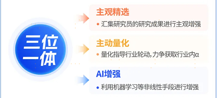 这只产品采用全新的“主观研究+主动量化+AI增强”的三位一体增强框架。我们可以将这只产品的运作,理解为三个清晰且连续的步骤: