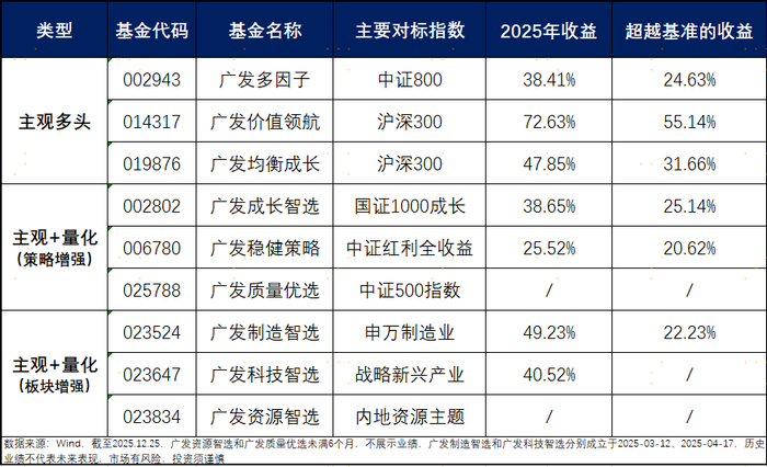 Wind统计显示,广发制造智选和广发科技智选分别成立于2025年3月12日和4月17日,截至12月25日的累计回报分别达到49.23%和40.52%,都展现了较好的业绩弹性。