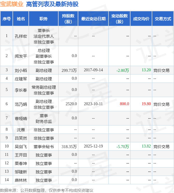 宝武镁业近半年内的董监高及核心技术人员增减持详情如下: