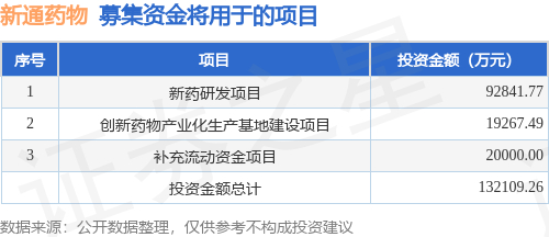 证券之星消息,西安新通药物研究股份有限公司(简称:新通药物)拟在上交所科创板上市,募资总金额为12.79亿元,保荐机构为中信证券股份有限公司。募集资金拟用于新药研发项目、创新药物产业化生产基地建设项目、补充流动资金项目,详见下表: