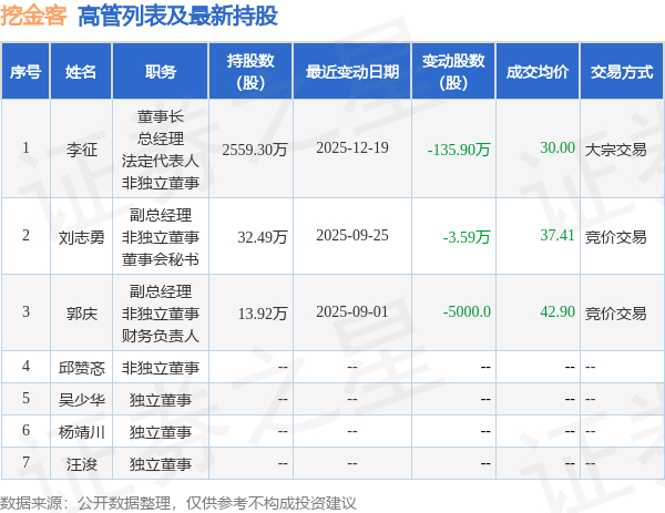挖金客近半年内的董监高及核心技术人员增减持详情如下: