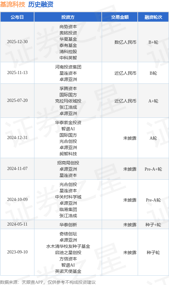 证券之星消息,根据天眼查APP于12月30日公布的信息整理,北京基流科技股份有限公司B+轮融资,融资额数亿人民币,参与投资的机构包括尚势资本,奥铭投资,华夏基金,泰有基金,清科控股,中科英智。
