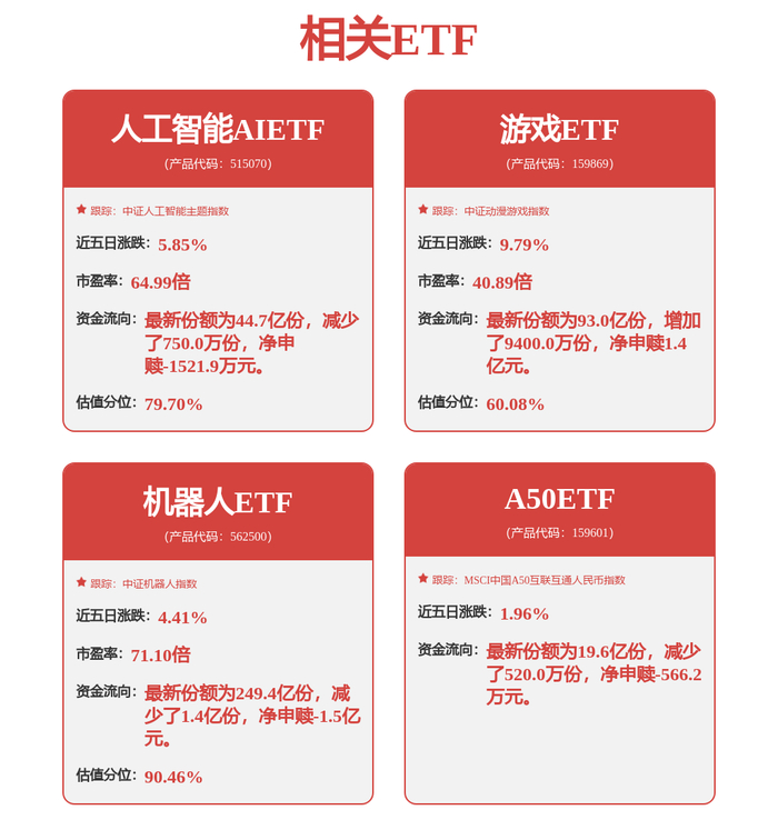 1月12日,三大股指早盘窄幅震荡,而游戏板块大幅上涨。截至上午10:25,游戏ETF(159869)涨4.93%。相关成分股中顺网科技涨7.94%、三七互娱涨7.00%、掌趣科技涨6.70%,巨人网络、光线传媒、恺英网络等小幅跟涨。(以上所列股票仅为指数成份股,无特定推荐之意)