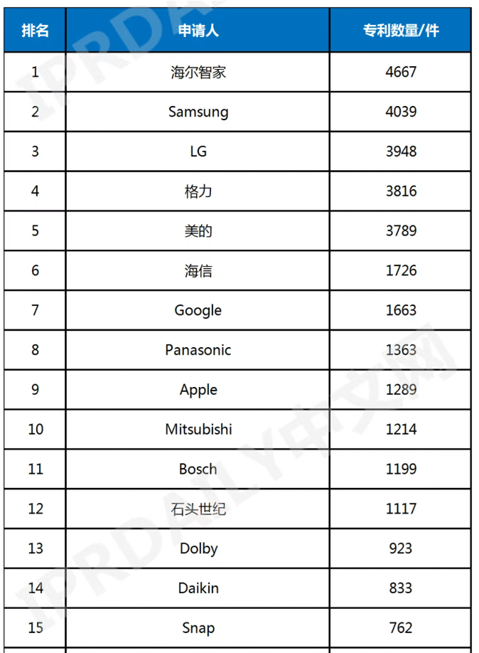 据IPRdaily榜单显示,当前的智能家电市场格局已初步稳定,形成了传统家电企业、互联网企业、科技企业三大阵营并驱争先的局面。