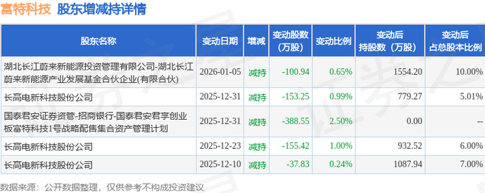 该股近半年内有股东持股变动,合计净减持835.99万股,股东增减持明细如下表: