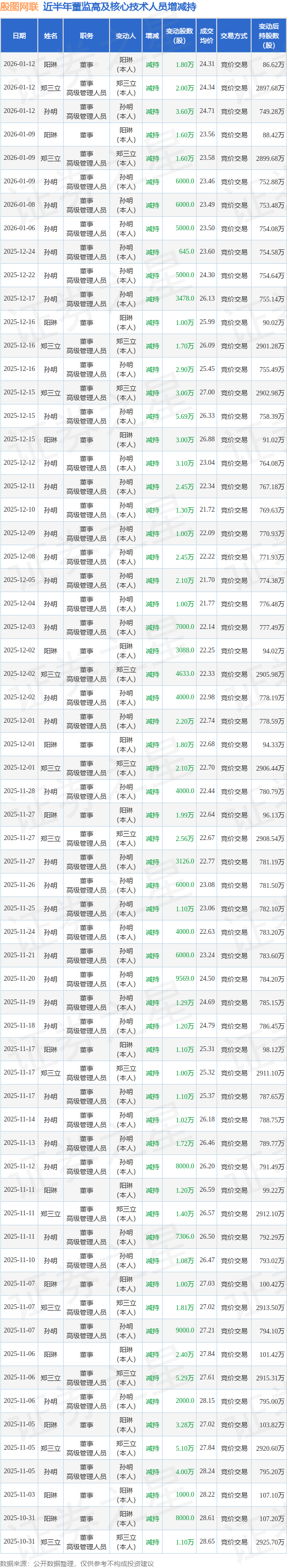 殷图网联近半年内的董监高及核心技术人员增减持详情如下:
