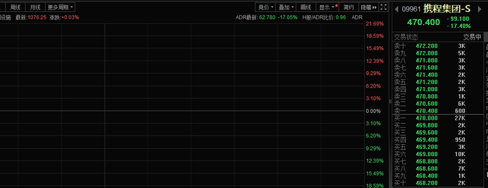 1月15日,携程集团港股股价大跌,截止发稿,跌幅超17%。