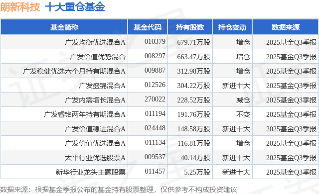 重仓朗新科技的前十大公募基金请见下表: