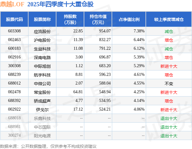 根据2025基金年报公募基金重仓股数据,重仓该股的公募基金共3家,其中持有数量最多的公募基金为平安基金的鼎越LOF。鼎越LOF目前规模为1.29亿元,最新净值4.7271(1月16日),较上一交易日上涨1.42%,近一年上涨103.91%。该公募基金现任基金经理为林清源。林清源在任的基金产品包括:平安鑫安混合A,管理时间为2024年7月3日至今,期间收益率为101.12%;平安港股通科技精选混合A,管理时间为2025年9月2日至今,期间收益率为11.68%;平安产业竞争力混合A,管理时间为2025年12月23日至今,期间收益率为4.95%。