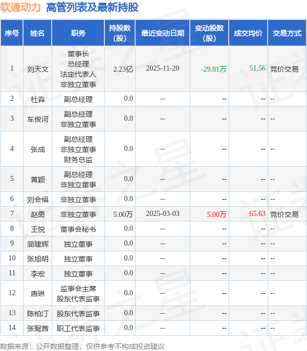 软通动力近半年内的董监高及核心技术人员增减持详情如下: