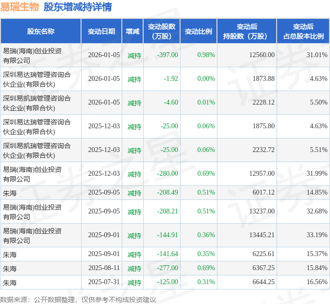 截至2026年1月20日收盘,易瑞生物(300942)报收于10.1元,下跌1.17%,换手率1.71%,成交量6.94万手,成交额7029.74万元。