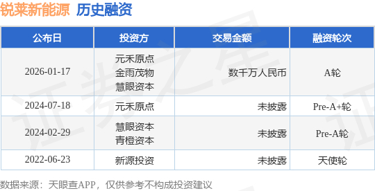 证券之星消息,根据天眼查APP于1月17日公布的信息整理,南通锐莱新能源技术有限公司A轮融资,融资额数千万人民币,参与投资的机构包括元禾原点,金雨茂物,慧眼资本。