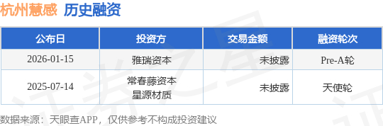 证券之星消息,根据天眼查APP于1月15日公布的信息整理,杭州慧感智能科技有限公司Pre-A轮融资,融资额未披露,参与投资的机构包括雅瑞资本。